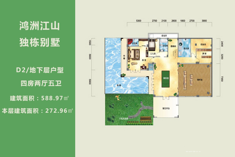 鸿洲江山湖景商墅推出5套房源,建面为418.50-429.16平米,单价约16888-23369元/平,总价725-928万/套