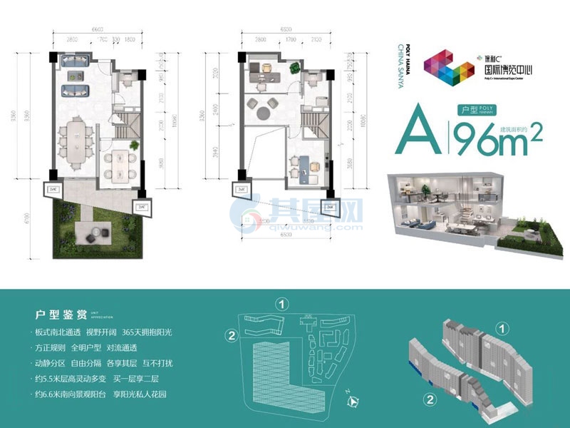 三亚·保利C+国际博览中心,1#、2#公寓,建面约94-99㎡。豪华装修,单价32158元/㎡起