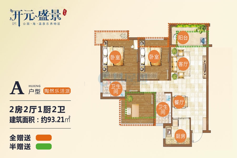 开元盛景,富硒温泉?咫尺医疗。76-112㎡精致两至三室,单价10800元/㎡,2022年年底交房