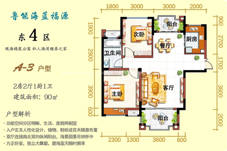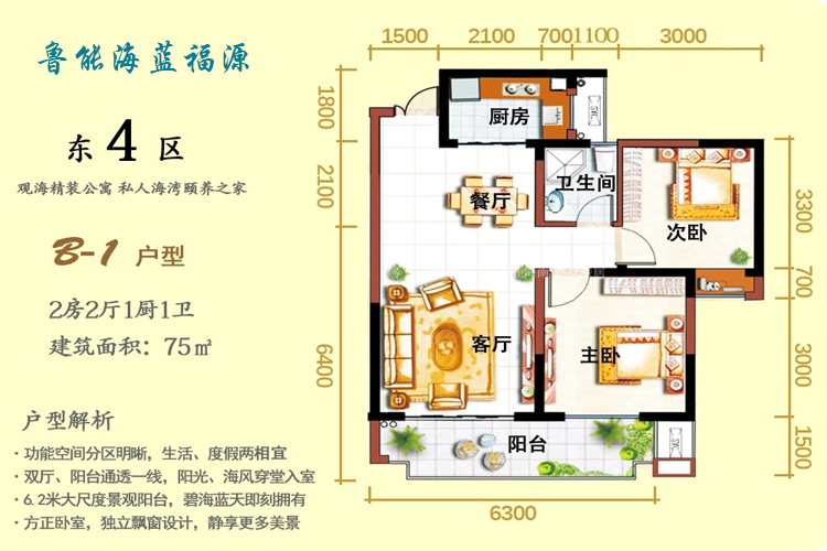 鲁能海蓝福源瞰海高层在售,建面为74-95平米三房户型,价格为82万/套