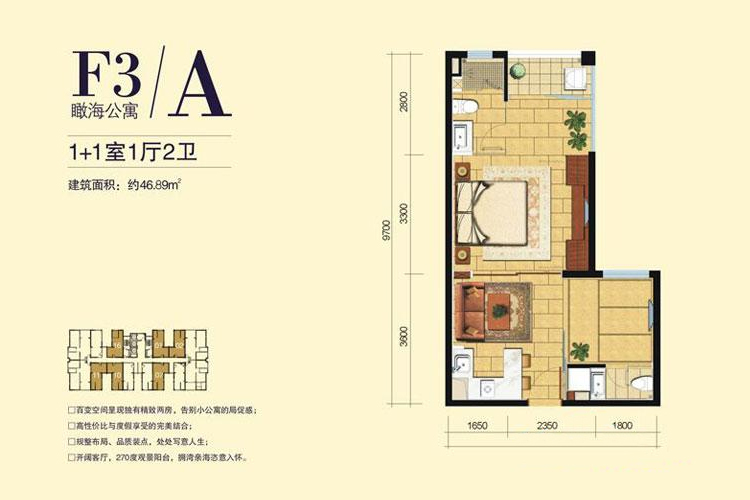 美林海寓A1户型 2房2厅1厨1卫 49.87㎡美林海寓A1户型样板间美林海寓A1户型样板间美林海寓A1户型样板间 开发商:三亚凤凰新城实业有限公司 售楼地址:三亚市