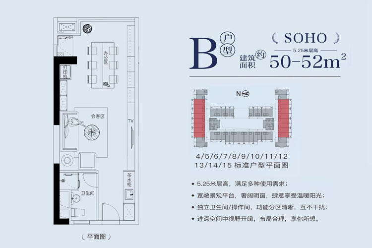 诚方创世纪广场SOHO,约40-52㎡小户型,准现房,层高5.25米,一口价95万/套起