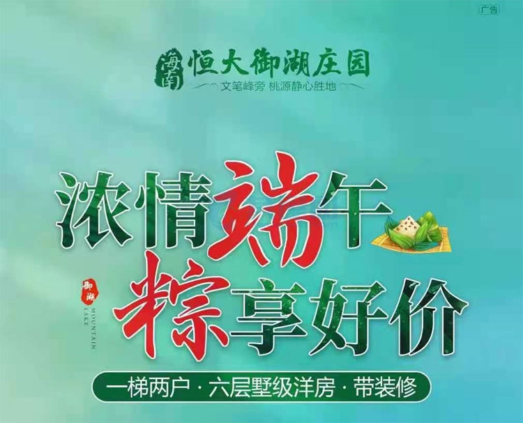 恒大御湖庄园:端午粽享好价 墅级三室洋房 特价8666-9052元/㎡