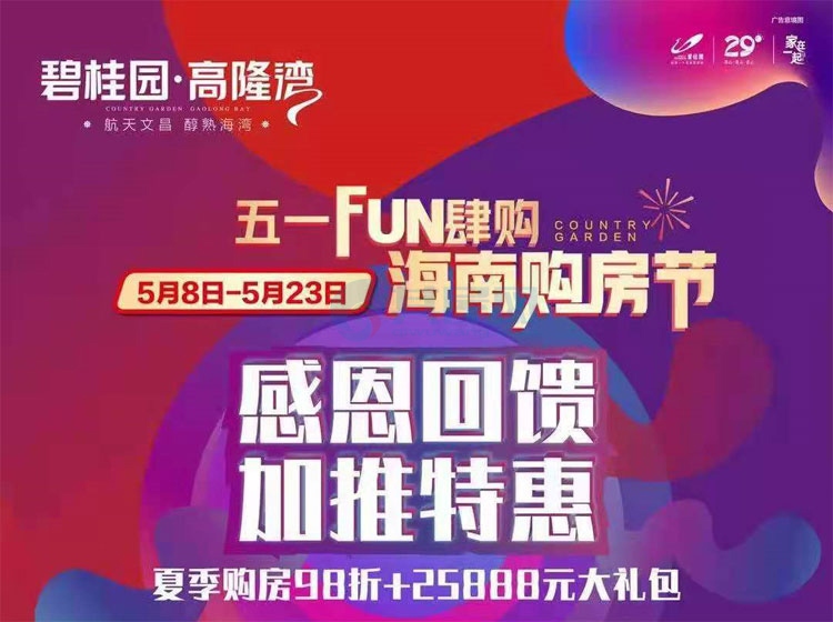 碧桂园高隆湾:亲海平层特惠购 总价约44万起 夏季购房98折
