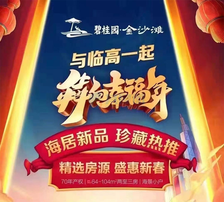 碧桂园金沙滩:海居新品 两至三房户型 总价69万/套起