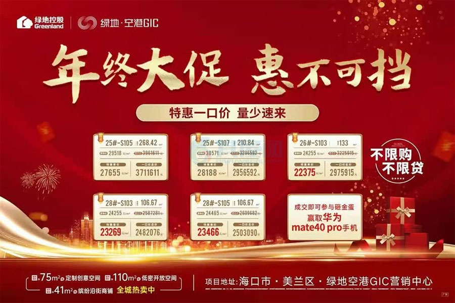 海口·绿地空港GIC:商业产品户型在售 一口价248-371万/套,成交赢好礼