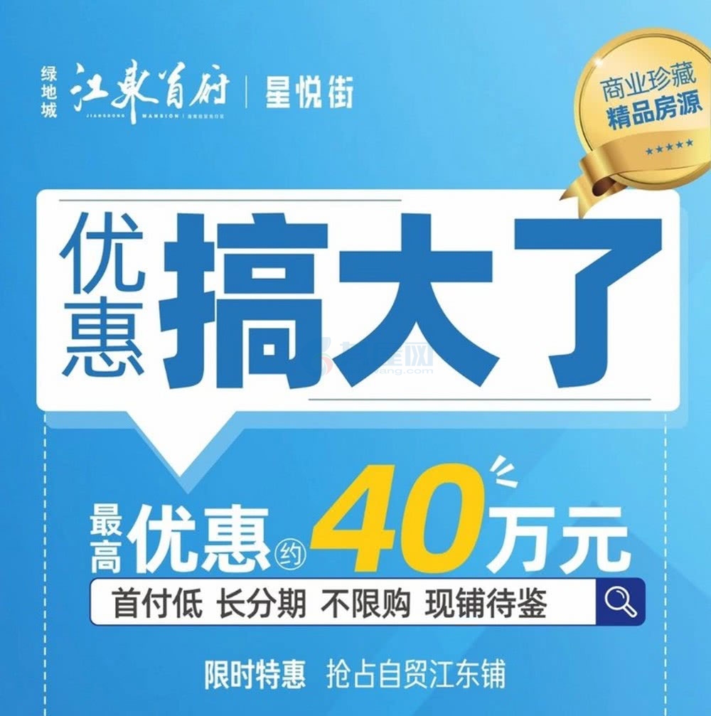 绿地城江东首府:3套商铺房源在售 首付低 总价282万/套起