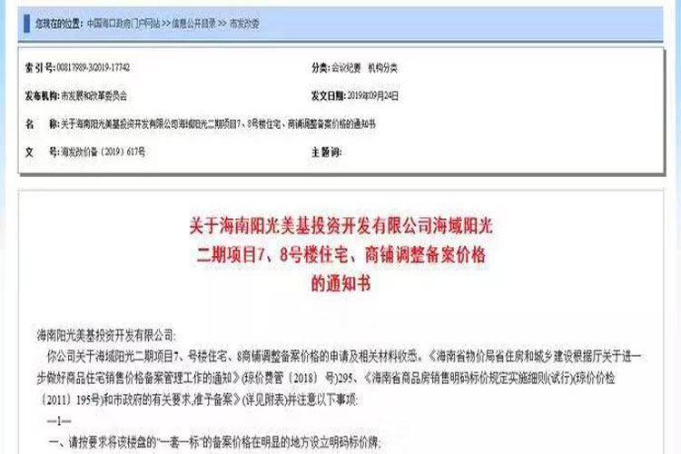 海口商品住宅备案价格取消17300元/平米限制?有关部门:价格不会永远不动