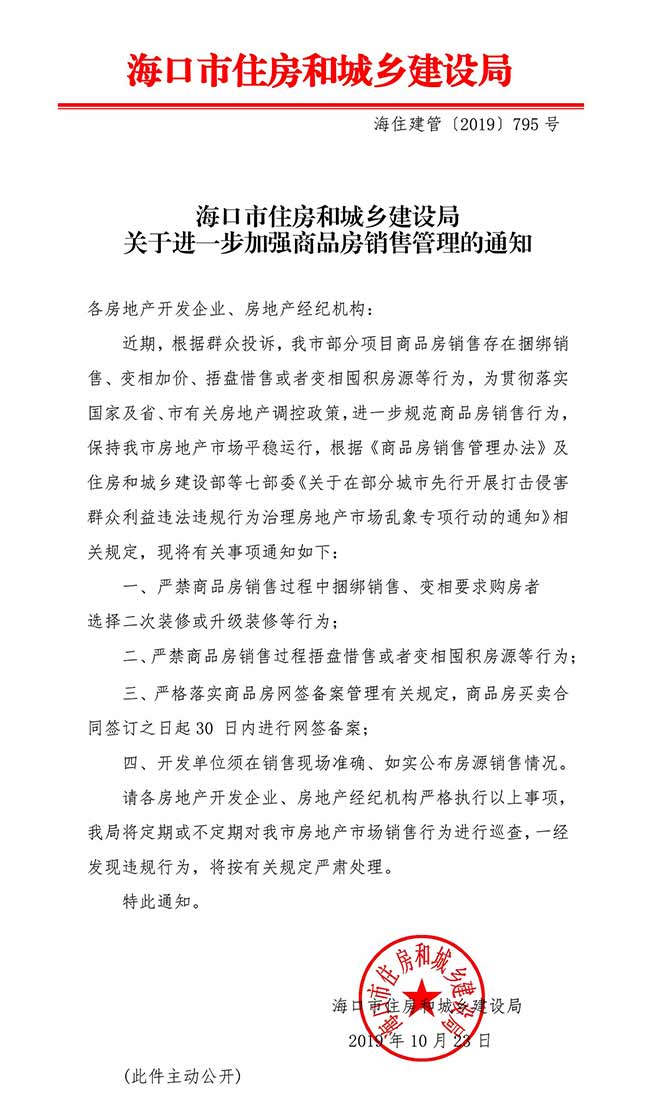 海口住建局发文,严禁商品房销售中的这些行为!